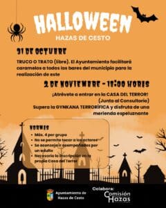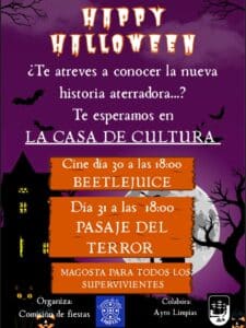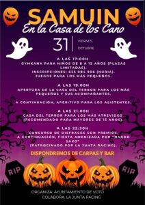 Información: el 31 de octubre se realizará el típico «Truco o Trato2 de forma libre, por los bares del municipio. El día 2 de noviembre gynkana terrorífica en la casa del terror, junto al consultorio