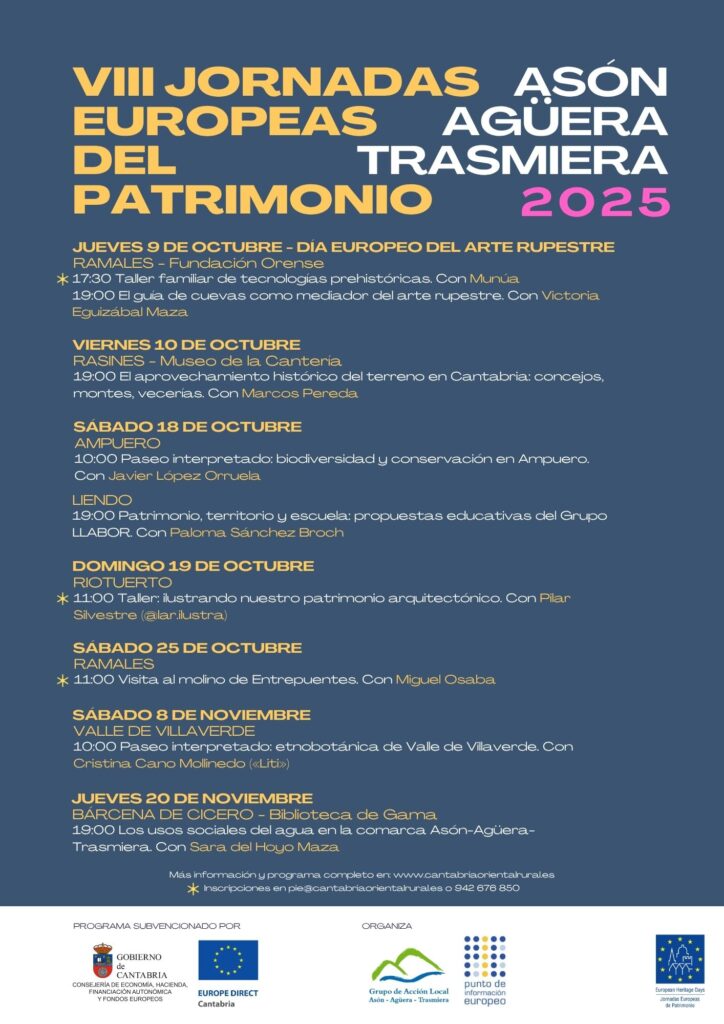 Todas las actividades son gratuitas, aunque en algunas, de aforo limitado (marcadas con un *), es necesario inscribirse, bien llamando por teléfono a las oficinas del Grupo de Acción Local (942 676 850) o escribiendo al correo del Punto de Información Europeo (pie@cantabriaorientalrural.es).
